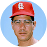Wally Moon flies out to catcher Tim McCarver.